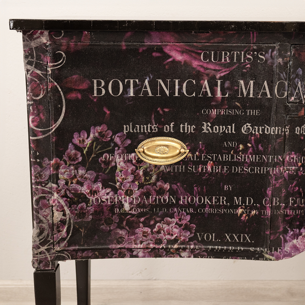 Bring the elegance of antique botanical illustration into your home with this exquisitely refurbished vintage sideboard. Featuring a collage-style decoupage inspired by Curtis’s Botanical Magazine, this piece celebrates the beauty of nature and the legacy of 19th-century botanical art.