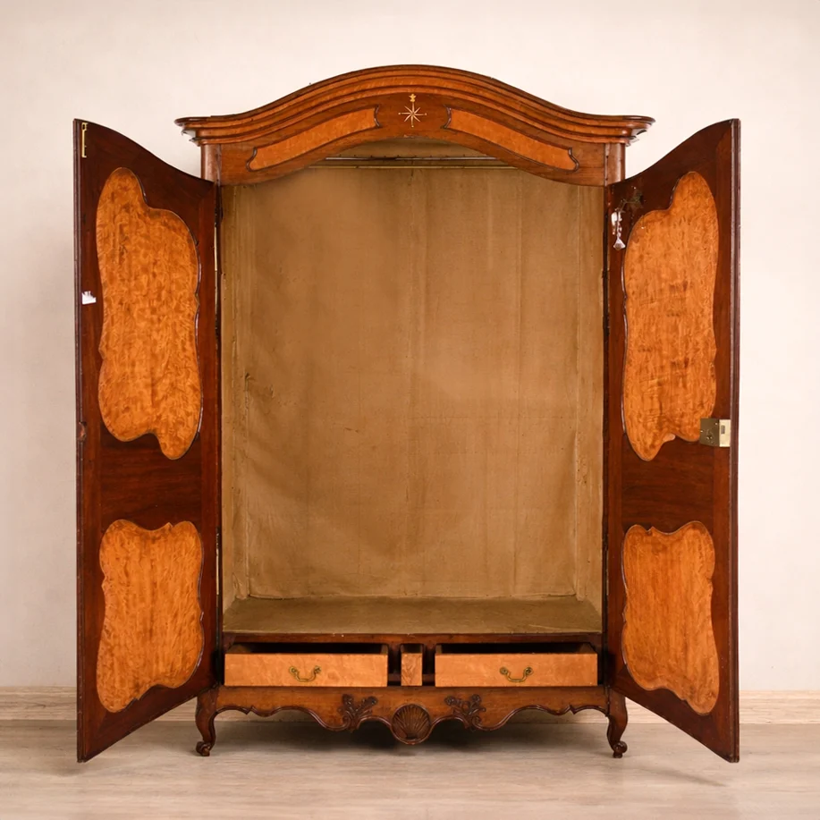 This Louis XV Provincial Walnut Wedding Armoire can be purchased as is, preserving its authentic patina and historical character. Alternatively, customisation, refurbishment, restoration, or specialised paint techniques are available at an additional cost—allowing you to tailor the piece to your unique interior vision.