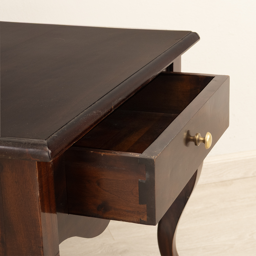 • A single drawer with original brass knob for subtle shine