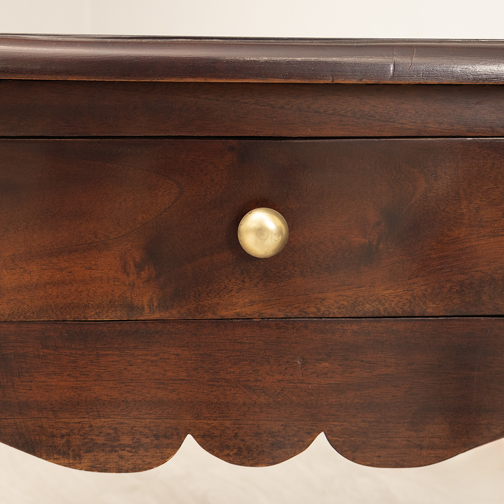 • Gracefully curved legs and scalloped apron detailing, evoking traditional craftsmanship