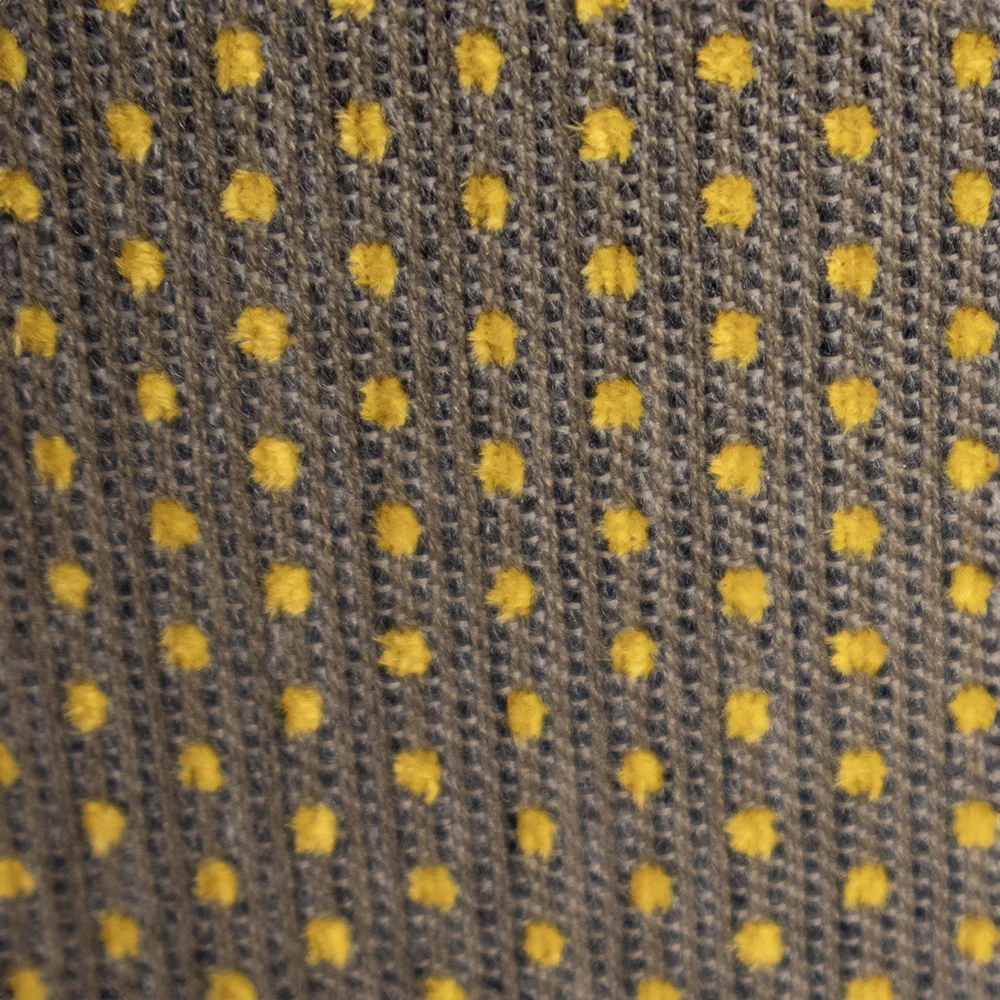 • Luxurious Upholstery: Gold/sulphur velvet with button tufting, paired with a dotted grey back panel.