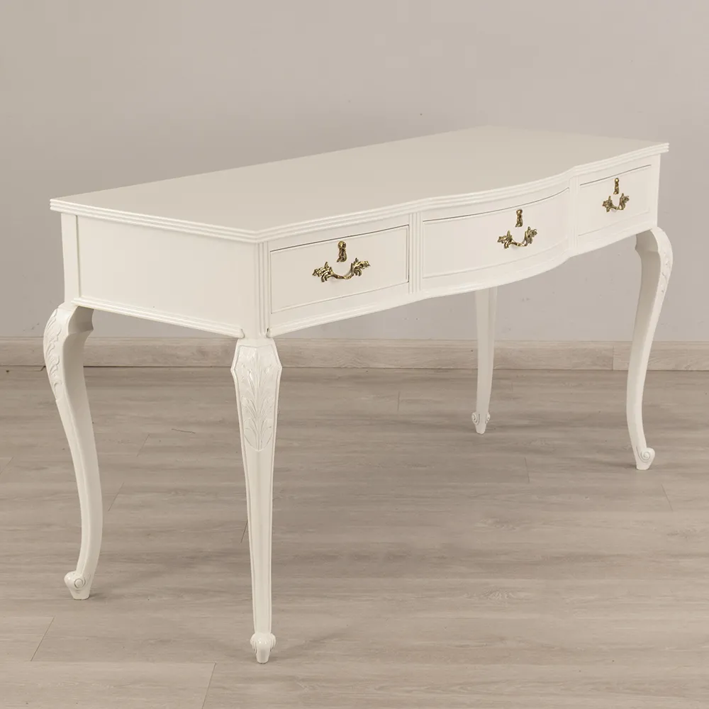 Three Ornate Drawers: Featuring gold-toned handles and keyhole escutcheons, the drawers offer both storage and decorative charm. The central drawer curves outward, adding sculptural interest.