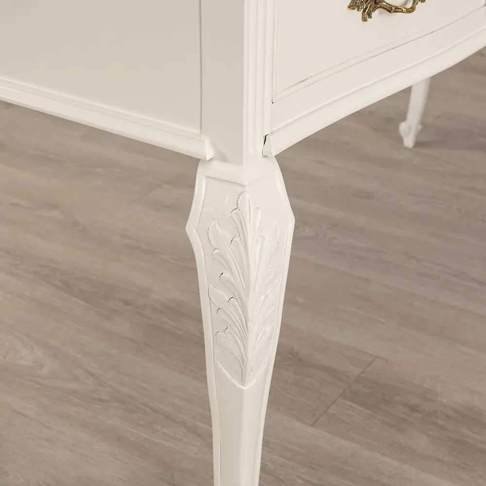 Elegant Painted Finish: Soft white tones highlight the carved details and elevate the piece’s vintage appeal—perfect for French country, shabby chic, or transitional interiors.