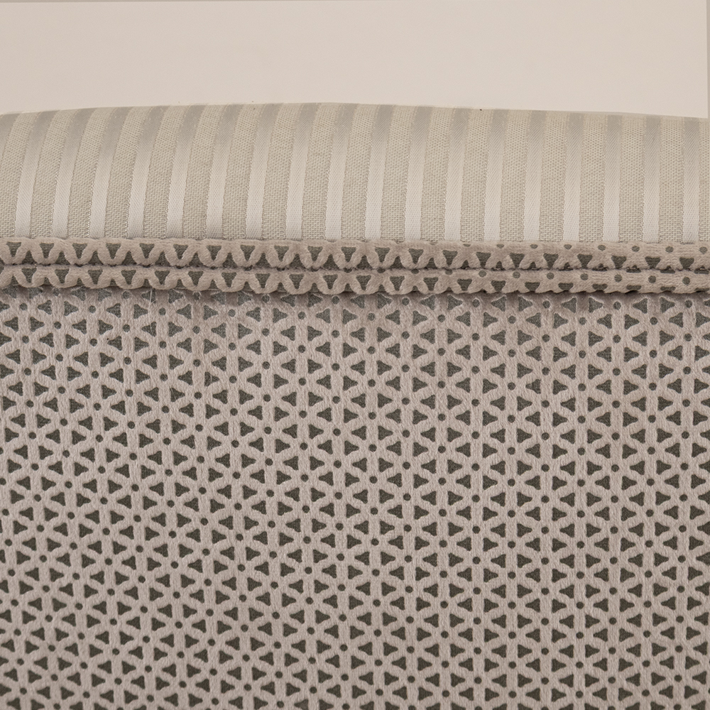 • Finishing Touches: Geometric fabric used as piping throughout for a crisp, tailored finish